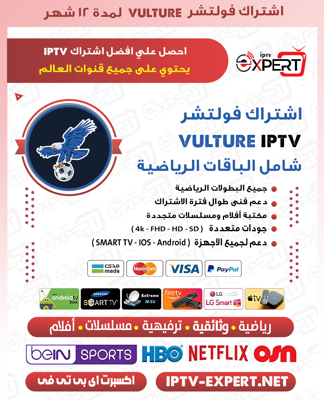 🥇 1. اشتراك Vulture IPTV – فولتشر (الأفضل لمحبي القنوات الرياضية)